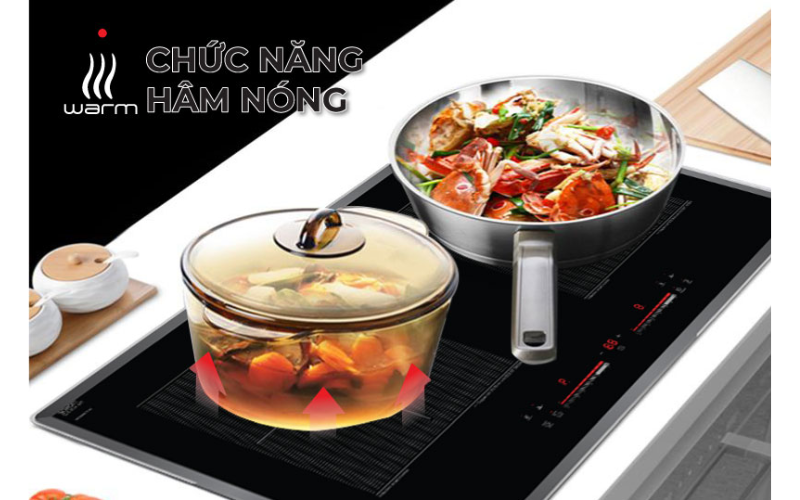 CHỨC NĂNG HÂM NÓNG- Ủ ẤM: Chức năng ủ ấm “hâm nóng” Keep Warm ở nhiệt độ 65 ºC: Với công nghệ biến tần INVERTER vượt trội, bếp từ Eurosun EU-T715Pro có khả năng ủ ấm ở nhiệt độ nhất định, chức năng ủ ấm được lập trình giữ mức nhiệt độ ổn định ở mức 65 ºC giúp chúng ta duy trì nhiệt cho thức ăn luôn nóng mà không bị nguội đi phải đun lại nhiều lần làm giảm chất dinh dưỡng trong thức ăn, đặc biệt về mùa đông thời tiết lạnh.
