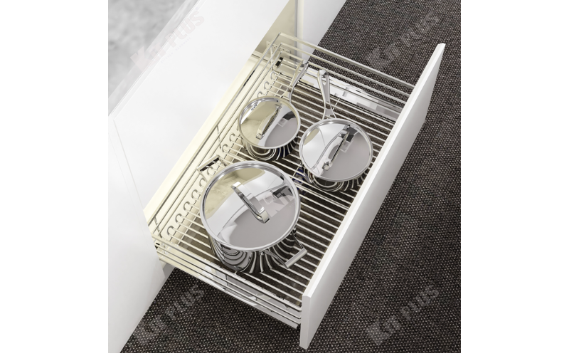 Sản phẩm được thiết kế chuyên biệt cho tủ bếp có chiều rộng 800mm, sử dụng hệ ray trượt giảm chấn cao cấp giúp kéo ra – đẩy vào nhẹ nhàng, không gây tiếng ồn.