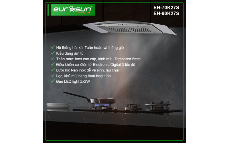 | Tên sản phẩm | MÁY HÚT MÙI EUROSUN EH-90K27S |